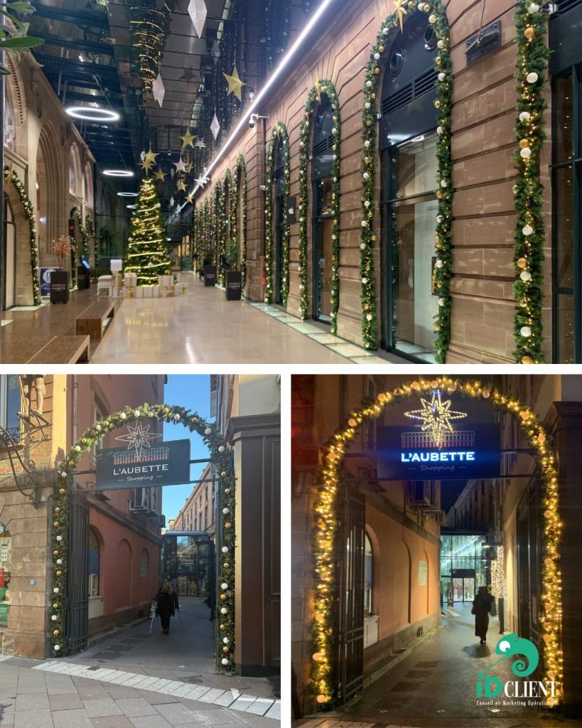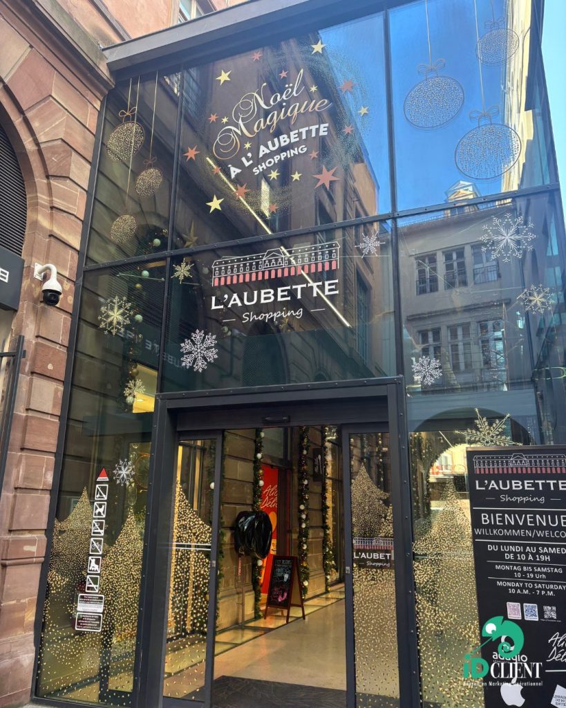 Pour la troisième année consécutive, nous avons habillé l’Aubette à Strasbourg de décorations de Noël féeriques, mêlant arches, vitrophanies, sapin géant et suspensions scintillantes, pour illuminer la galerie face au marché de Noël emblématique de la ville.